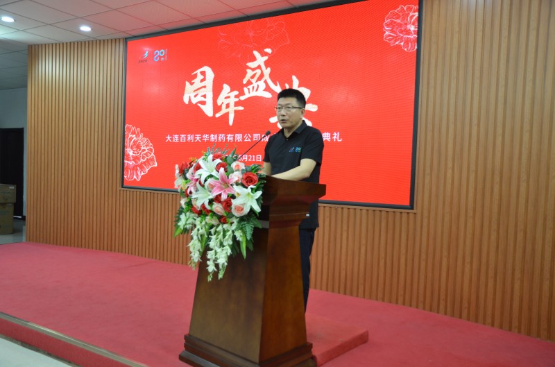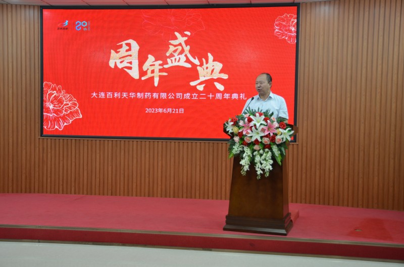 ? 公司董事長王英新先生致辭,百利制藥20年,是全體百利人敢闖敢試、敢為人先的20年。20年來,百利制藥由小變大,由弱變強。成績的背后,要感謝長期以來關心和支持百利制藥發(fā)展的各位領導、業(yè)界同仁、合作伙伴,承蒙時光不棄,感恩一路有你。向奮斗在各個崗位上的全體百利制藥家人及背后默默支持的家屬們,致以誠摯的謝意。