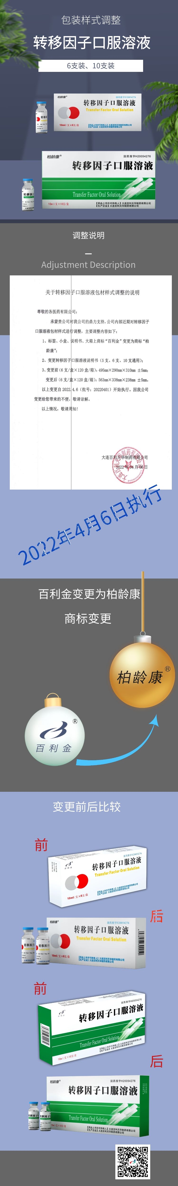 關(guān)于轉(zhuǎn)移因子口服溶液包裝樣式調(diào)整的說明